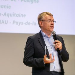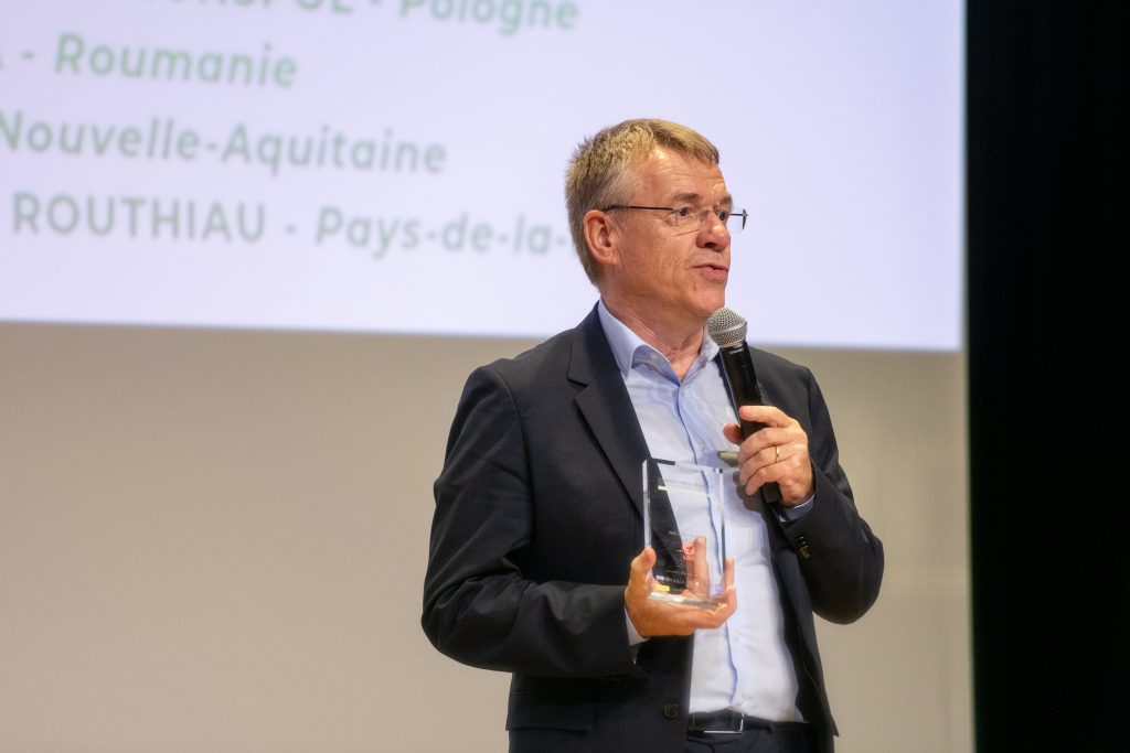 Prix Sustainability remis à Emmanuelle CHARIER, Présidente du Conseil de Surveillance de CHARIERet à Constant CHARIER (à gauche) Directeur des Ressources Humaines de CHARIER par Jérôme LAURRE (à droite), Managing Partner & Founder de BEYOND SOLUTIONS
