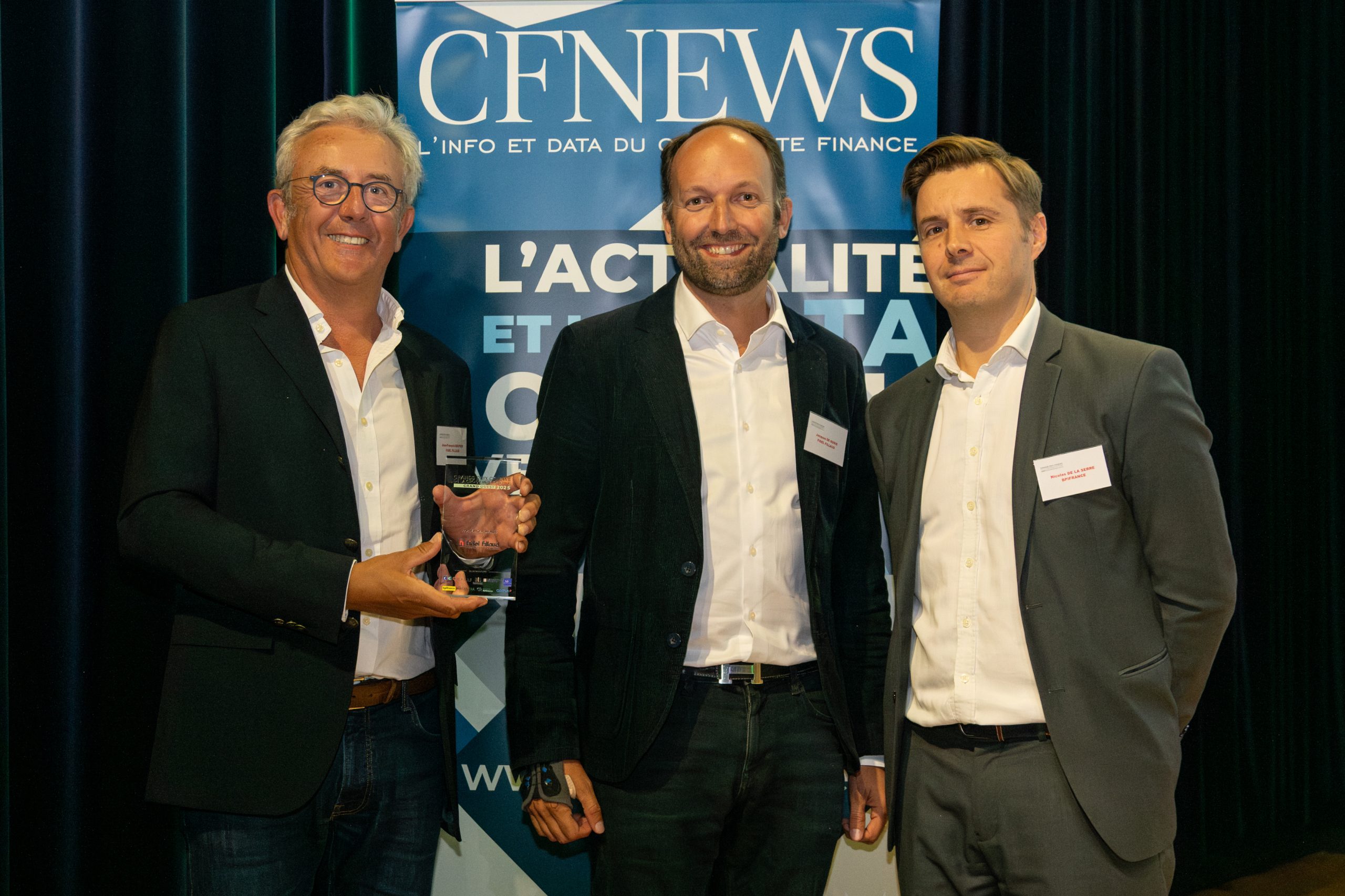 PRIX MID CAP FRANCE : Lauréat FIDEL FILLAUD avec Jacques DE SONIS, Directeur Général et Nicolas DE LA SERRE, Directeur d’Investissement Senior de BPIFRANCE