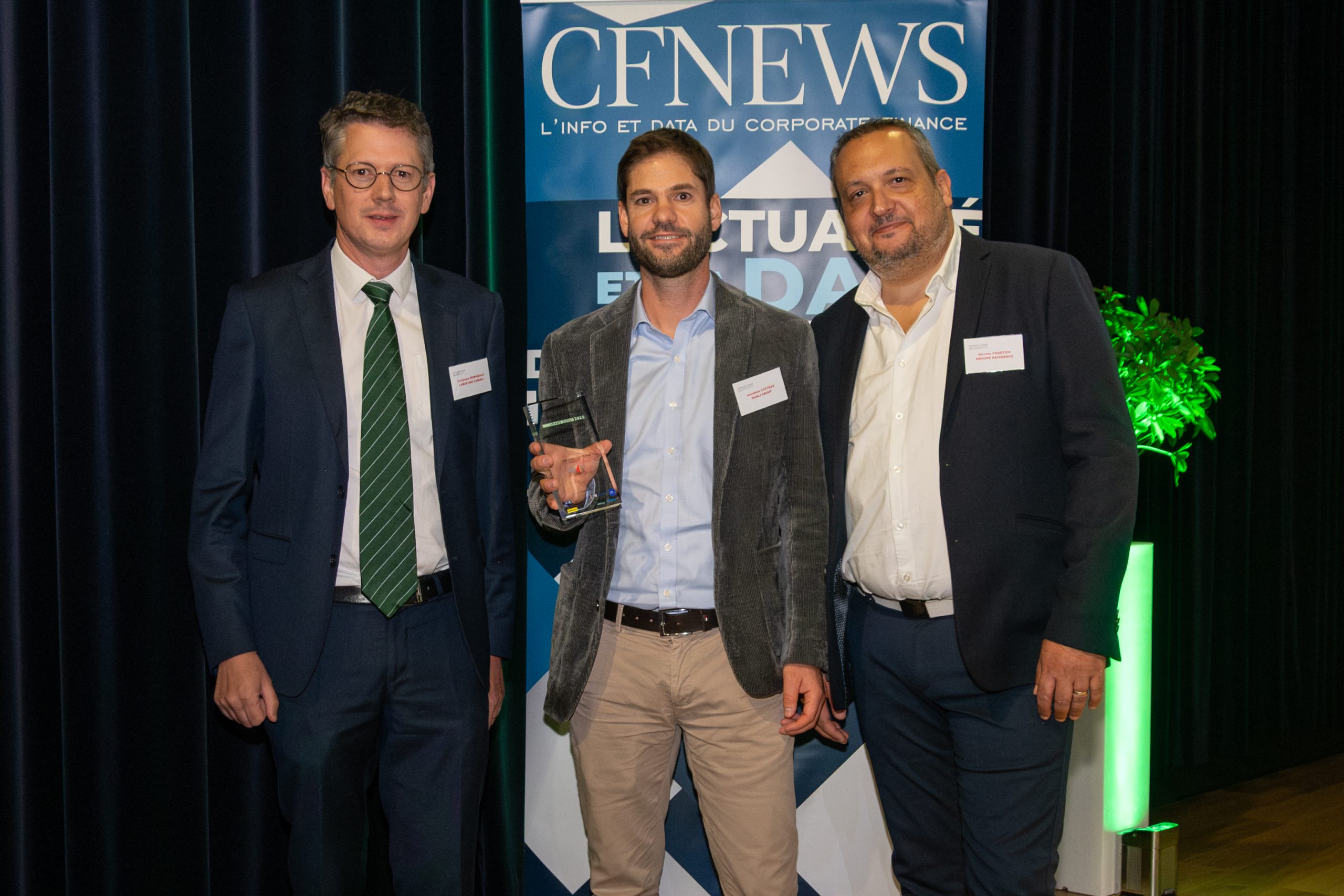 Prix Small Cap France remis à Jonathan LOCTEAU (au centre) Directeur Général Adjoint du QUALI GROUP par Guillaume MORINEAUX (à gauche), Avocat Associé de LAMARTINE CONSEIL et par Nicolas CHARTIER (à droite), Directeur Régional Grand Ouest & Sud Ouest de GROUPE REFERENCE