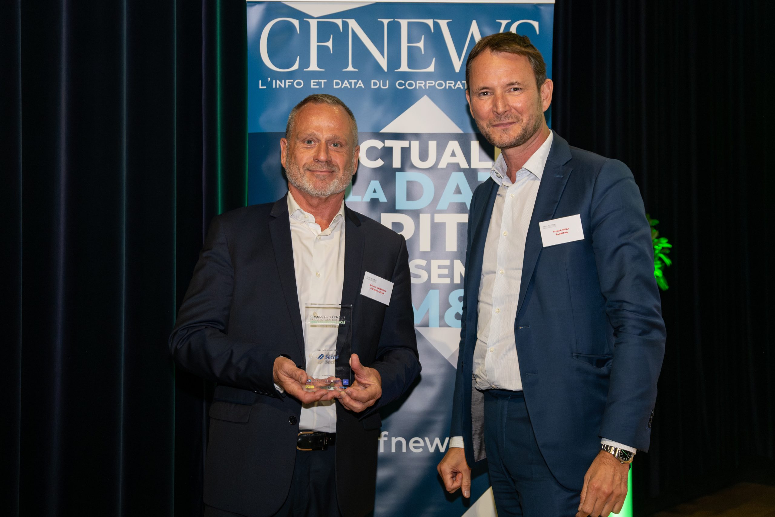 Prix International remis à Manuel ANDERSON (à gauche) Directeur des Relations Investisseurs de SÉCHÉ ENVIRONNEMENT par Franck Noat (à droite), Partner de ALANTRA