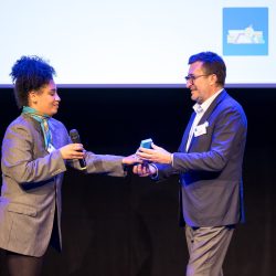 Trophée remis à Zoulhehat MRADABI, Head of Marketing & Communication de FAIRLY MADE par Olivier CAZZULO, Président Fondateur de NETSYSTEM