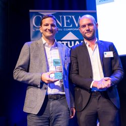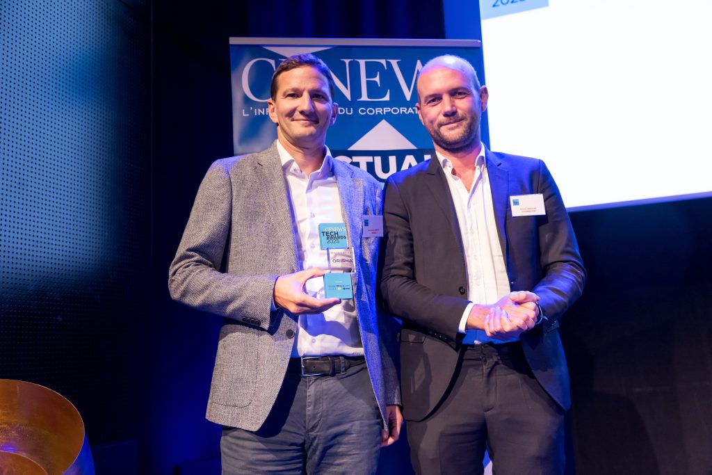 Trophée remis à Alexandre FRETTI (à gauche), CEO de ORISHA par Benoit MERCIER (à droite), Associé – M&A – Tech & Financial de CLEARWATER